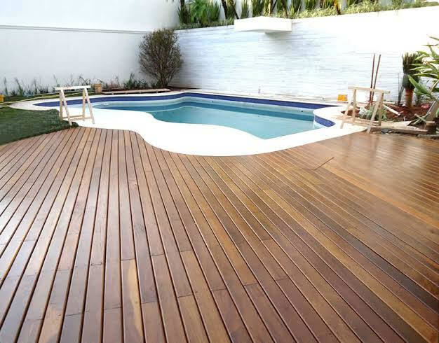 Desenvolvido para suportar exposição constante à água, ao sol e ao uso intenso, o deck para piscina combina resistência estrutural, conforto térmico e acabamento refinado. Projetado de forma personalizada, adapta-se perfeitamente ao entorno da piscina, proporcionando circulação segura, superfície antiderrapante e drenagem eficiente para maior durabilidade da madeira.