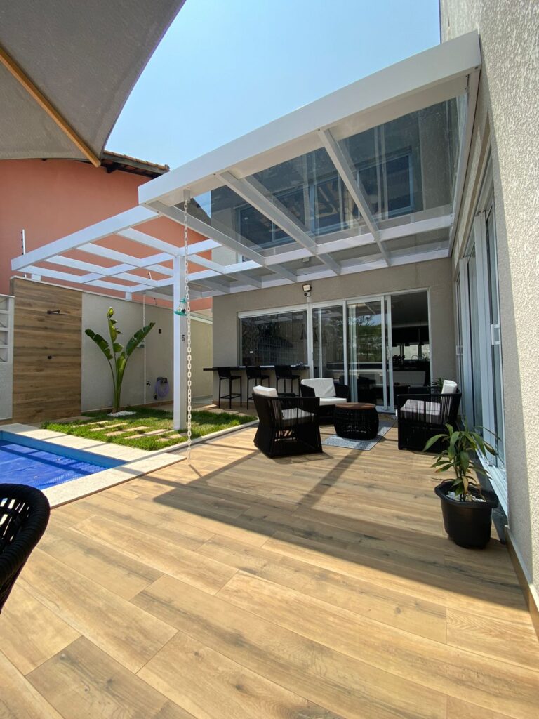 Mais do que proteger, a cobertura transforma o espaço externo em um ambiente funcional, elegante e pronto para ser aproveitado em qualquer estação. Projetada sob medida, valoriza áreas gourmet, varandas, garagens e espaços de lazer, criando conforto térmico e integração perfeita com a arquitetura do imóvel.